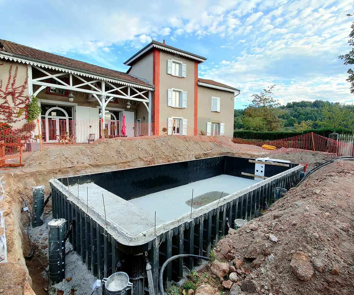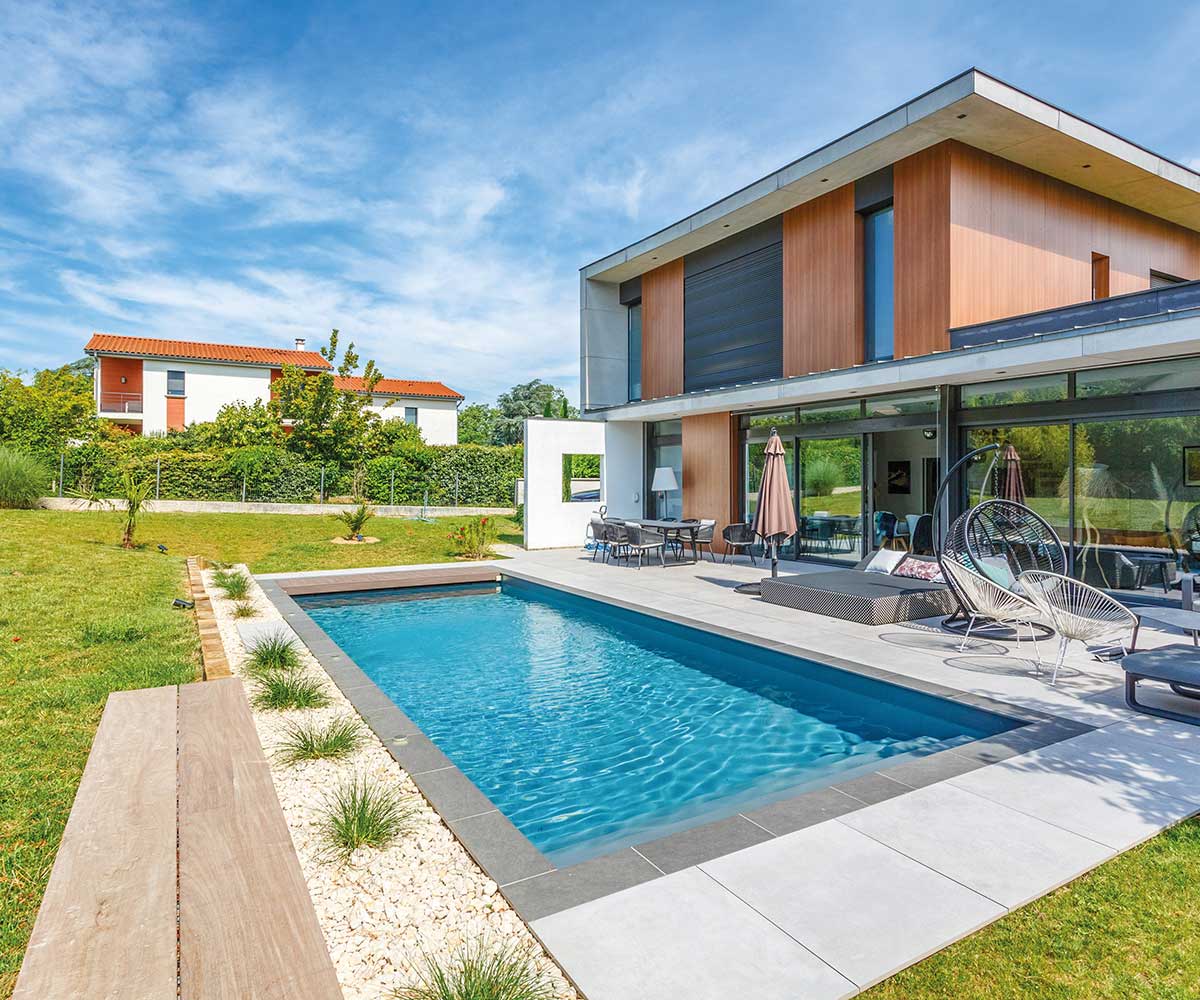 A typical example of a Desjoyaux pool that includes a pipe-free filtration mechanism and our Proprietary Active Permanent Casing structure