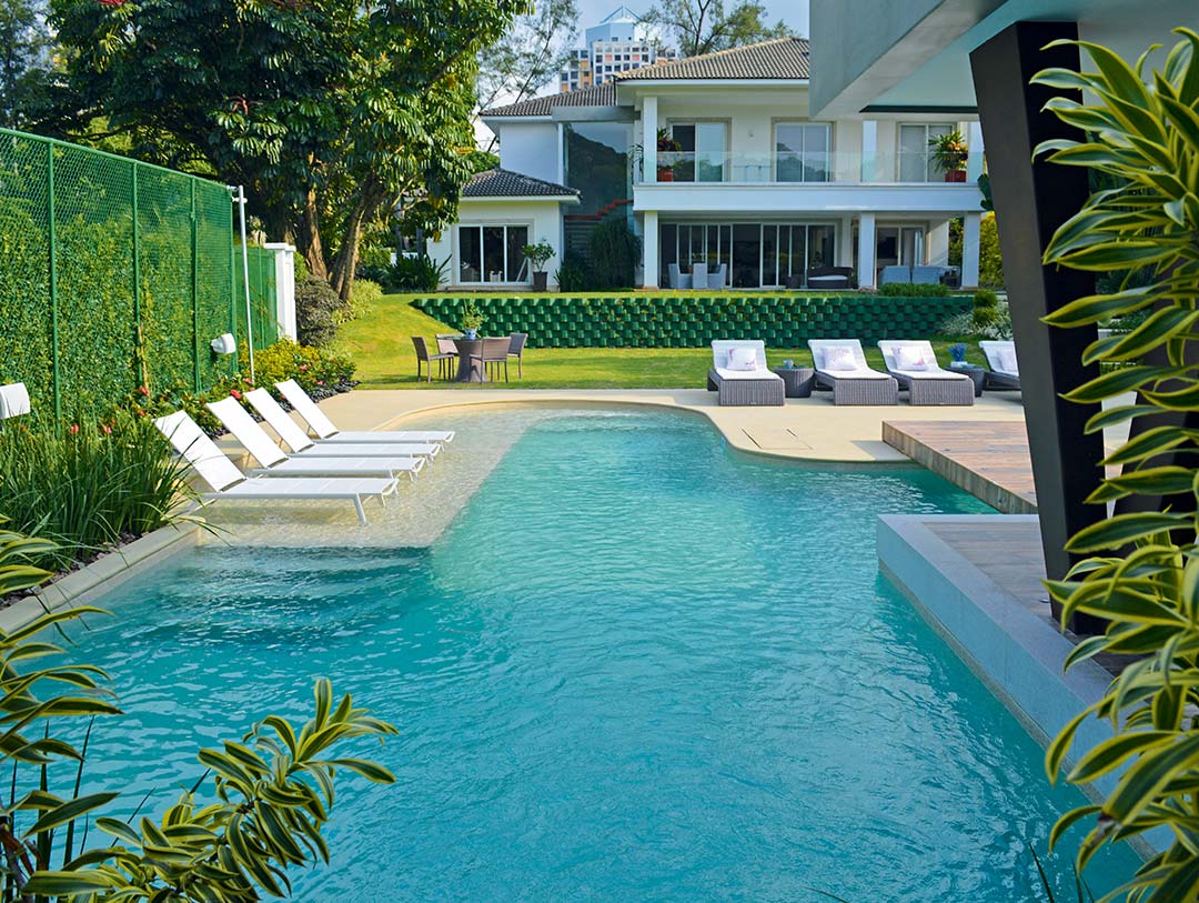 Explore Home PoolsRecommended for large villas, resorts, or housing societies. Offers the option for spa seating, deck areas, and multiple entry points.